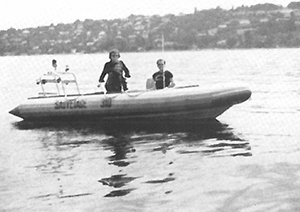 Mise en service d’un nouveau bateau de sauvetage, Zodiac pneumatique équipé d’un moteur Mercury 50 CV, équipé d’une radio téléphone. Ce bateau fit sensation au port des Iris tant par sa conception assez révolutionnaire que par ses qualités évolutives.